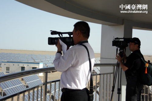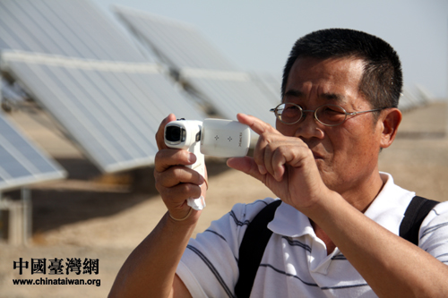 臺灣記者劉朝發(fā)在敦煌市太陽能產(chǎn)業(yè)園區(qū)拍攝。(中國臺灣網(wǎng) 郜利敏 攝)