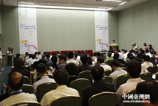 以“互聯(lián)互通,合作共贏”為主題的2010兩岸互聯(lián)網(wǎng)發(fā)展論壇今天上午在臺北國際會議中心隆重開幕。(中國臺灣網(wǎng) 李桂英 攝)