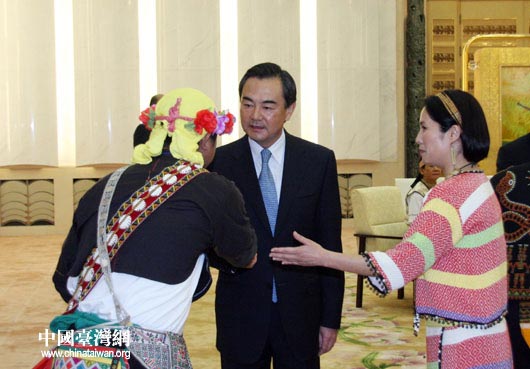 8月19日下午,中共中央臺辦主任王毅在北京人民大會堂會見了高金素梅率領的臺灣少數民族代表團一行。(中國臺灣網 鐘寶華 攝)