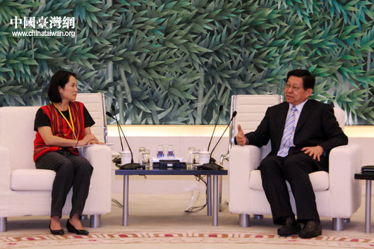 8月20日商務(wù)部部長陳德銘會見臺灣少數(shù)民族代表團團長高金素梅一行。(中國臺灣網(wǎng) 鐘寶華 攝)