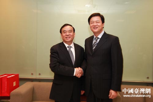 呂祖善與臺北縣長周錫瑋會見握手留影(浙江省臺辦 王健 攝)