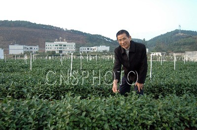 十二月二十六日,廣西玉林市三山坡懿德興農(nóng)業(yè)有限公司總經(jīng)理洪武雄先生向訪客介紹有機(jī)茶種植經(jīng)驗(yàn)。洪武雄先生投資廣西玉林農(nóng)業(yè)已十多年。他稱,玉林海峽兩岸農(nóng)業(yè)合作實(shí)驗(yàn)區(qū)充滿商機(jī)。目前三山坡公司已在玉林市仁東鎮(zhèn)石地村建立了一百四十畝的農(nóng)業(yè)產(chǎn)業(yè)基地和二百畝茶園。中新社發(fā) 蔣雪林 攝