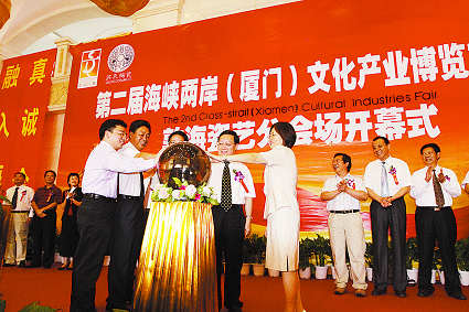 10月29日下午,位于海滄中滄工業園廈門敦海藝品有限公司的第二屆海峽兩岸(廈門)文化產業博覽交易會瓷藝分會場熱鬧開幕。
