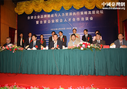 本次舉辦的臺資企業校企人力資源合作簽約儀式旨在促進臺資企業與校企人力資源合作,進一步建立產學研與產業技術創新戰略聯盟等技術聯盟。(中國臺灣網 記者 胡珊珊) |