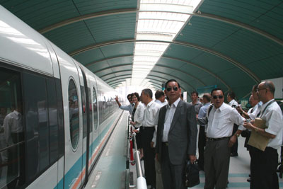 參訪團一行在上海參觀并乘坐磁懸浮列車