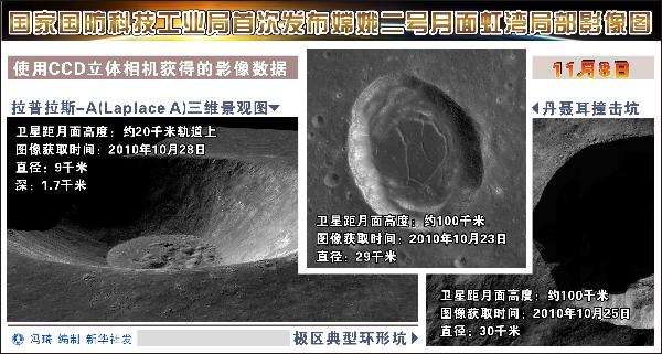 這是拉普拉斯-A三維景觀圖(數據獲取時間為10月28日)。  11月8日,國家國防科技工業局首次發布嫦娥二號月面虹灣局部影像圖。新華社發