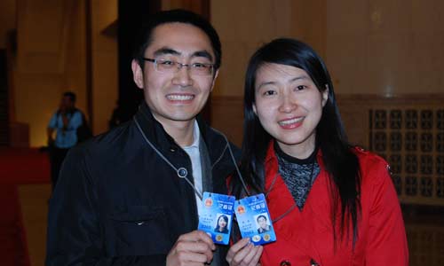 一打聽(tīng),還真是一對(duì)小兩口。仔細(xì)一看,兩人都帶著“十一屆全國(guó)人大三次會(huì)議記者證”的胸牌。這對(duì)小夫妻,男的叫張?chǎng)危瑏?lái)自陜西日?qǐng)?bào),女的叫趙靜,來(lái)自三秦都市報(bào)。他們都是各自媒體派到北京報(bào)道此次會(huì)議的參會(huì)記者。