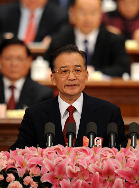 3月5日,第十一屆全國人民代表大會第二次會議在北京人民大會堂開幕。國務(wù)院總理溫家寶作政府工作報告。新華社記者劉建生攝