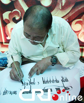 藏文書法有著悠久的歷史,從藏文產生以來至今,先后共出現了烏金、徂仁、徂同、朱匝、白徂和酋體等數十種字體。藏文是用硬筆書寫的,形體優美流暢。有關藏文書法的書經、筆論等有上百種之多。羅布次仁攝