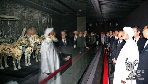 阿卜杜勒阿齊茲·貝勒卡迪姆一行在中國國家館參觀國寶“銅馬車” 攝影:周雷
