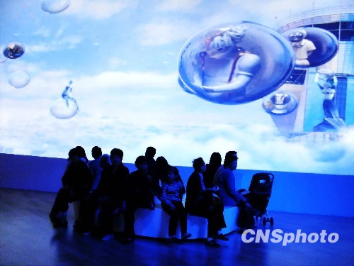 芬蘭館展示了很多高科技產(chǎn)品,例如展廳的互動電子藝術(shù)墻上有200個移動電話,觀眾也可以將自己的作品添加進去;又如電梯采用最新射頻技術(shù),設(shè)計也很前衛(wèi)。