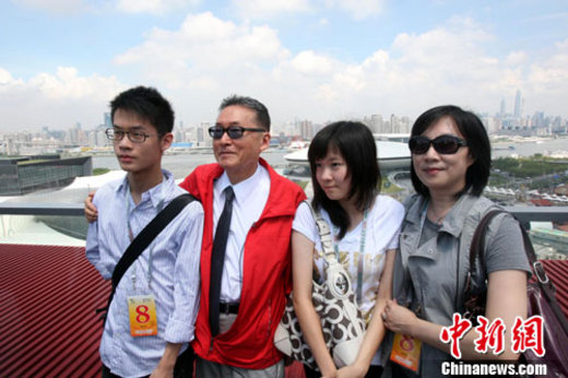 8月27日,臺灣知名學者李敖攜家人參觀上海世博會。圖為李敖攜家人在中國館頂樓平臺合影留念。中新社記者 湯彥俊 攝