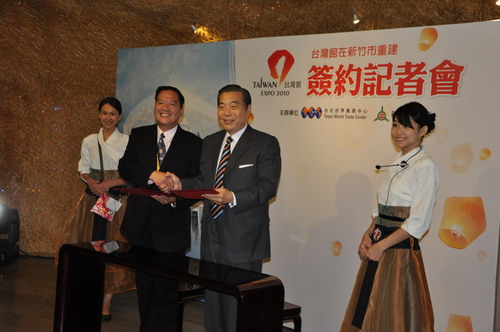 王志剛董事長在簽字儀式后面對媒體表示,臺灣館的同仁辛苦了大概一年的時間,大家日以繼夜,能夠爭取到很多很多的榮譽。事實上,世博臺灣館,我們發揮了一個很大的作用,就是讓兩岸人民,借臺灣館相互更加的了解。很多大陸的同胞,就是在這棵樹底下喝茶,他們邊喝邊說,“哎,我們老家也是這樣的”。聽到這個話,我們也感覺到非常榮幸。現在,我們要把“女兒”嫁出去了,真有點不舍得。當然,既然要嫁,我想總要嫁一個有文化的家庭吧,那新竹市,就是臺灣最重要的科技大城,也是臺灣最重要的文化大城,也是臺灣最重要的學術大城。嫁女兒總要嫁得近一些,而新竹市距離臺北市很近,而新竹本身條件非常好,觀光的資源也好,將來很可能變成大陸觀光客一下桃圓機場,就想到新竹去看臺灣館,新竹很有可能變成大陸同胞觀光臺灣的“第一站”。