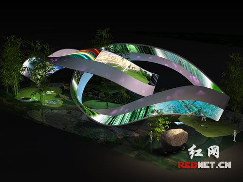 上海世博會湖南館名為“桃花源里(Xanadu)”,展示主題為“都市桃花源”,取“桃花源記”之意境,意在用人類的智慧和理性來實現人與自然、人與城市的完美融合。展示將以長株潭城市群“兩型”社會實驗區為背景,演繹未來自然、生態新型都市的構想,通過“師法自然”來實現天人合一、返璞歸真、和諧自然的中國未來城市生活意境。