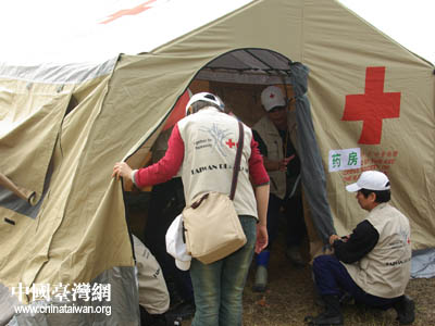 20日下午,臺灣紅十字組織醫療隊帶約3噸醫療用品等物資前往廣漢市,21日在高坪鎮,23日在體育場救災點設立醫療救護站,展開救護服務。救護站設有中、西醫。從21日至24日共計診治476名。對數十名老弱災民進行體檢,做了一臺氣胸手術、兩個骨折手術。和一個頭皮縫合小手術。內、外科,兒科,針灸,急處方發藥點。巴蜀音像制作中心 蘭志泉 攝