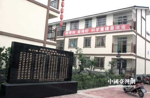 綿陽(yáng)市涪城區(qū)龍門鎮(zhèn)中脊村災(zāi)后重建紀(jì)念碑(左)。目前中脊村永久性居民點(diǎn)建設(shè)穩(wěn)步推進(jìn),前期的13棟農(nóng)房現(xiàn)已完工,群眾已入住。2期47戶農(nóng)戶永久性居民點(diǎn)正在緊張施工建設(shè)。(中國(guó)臺(tái)灣網(wǎng) 田云鵬 攝)