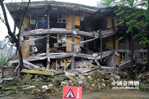 被地震摧毀的職工宿舍樓。(中國臺灣網 田云鵬 攝)