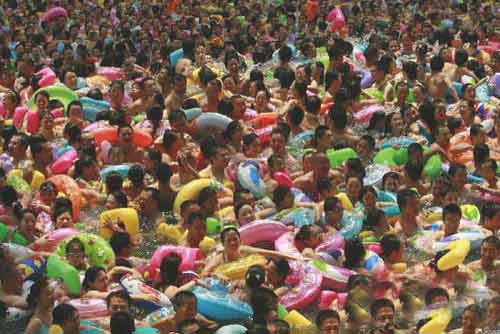 2008年7月27日下午,酷暑難耐,熱浪襲人。上萬名游客擠進(jìn)位于四川大英縣的中國死海度假旅游區(qū)國內(nèi)最大的室內(nèi)沖浪池激情沖浪,感受清涼,消夏避暑。中國死海擁有目前國內(nèi)最大的室內(nèi)水上世界,它跨度114米,高度約40米,是當(dāng)前亞洲跨度最大的民用天幕式建筑,面積約三萬平方米,可同時(shí)容納上萬人進(jìn)行海上沖浪及各種新穎的水上游樂!目前,中國死海游客回升到地震前同期水平。 |