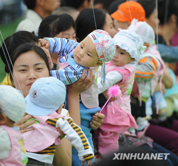 2009年5月13日,在什邡市剛剛落成的由北京援建的北京小學操場上,108個“羅漢娃”舉行了集體生日抓周活動。許多愛心人士不遠千里來到現場,與寶寶們結對,拜認干爹干媽。