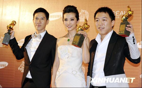 新華網臺北11月28日電(記者 陳斌華 應堅)第四十六屆臺灣電影金馬獎28日晚在臺北縣揭曉,大陸女演員李冰冰因在年度大片《風聲》中的精彩演技榮獲最佳女主角;在最佳男主角獎項上,金馬獎首次頒出“雙黃蛋”,由香港演員張家輝(《證人》)、大陸演員黃渤(《斗牛》)共同獲得。