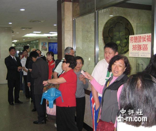 據報道,今早反扁民眾自動聚集在法院周遭,自備嗆扁標語。法院內等著排隊進入法庭旁聽的民眾,反扁、挺扁民眾都有,但兩邊今早異常平靜,沒有互相叫陣。