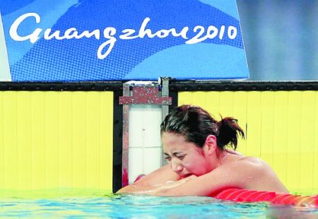 這是韓國(guó)女選手鄭達(dá)萊在昨晚的女子200米蛙泳比賽中奪冠后的鏡頭,由于過(guò)度激動(dòng),她甚至沒(méi)來(lái)得及爬出泳池就失聲痛哭。鄭達(dá)萊如此激動(dòng)是因?yàn)樗谥腥盏陌鼑χ型粐觯蚱屏隧n國(guó)女子游泳12年來(lái)未獲亞運(yùn)金牌的紀(jì)錄。這枚突如其來(lái)的金牌瞬間引爆了韓國(guó)網(wǎng)友的熱烈反響,很多人把她夸為“實(shí)力與美貌并存的真正美女”。