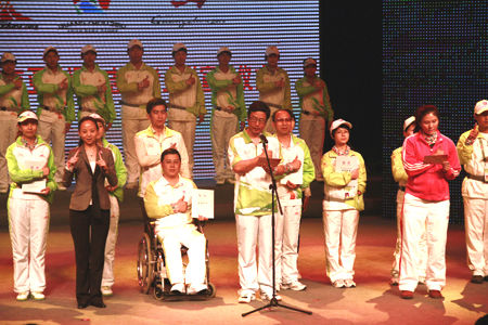 廣州市政府副秘書長、廣州亞殘運(yùn)會組委會副秘書長林道平向亞殘運(yùn)會志愿者代表頒發(fā)了《亞殘運(yùn)會志愿者錄用證書》。