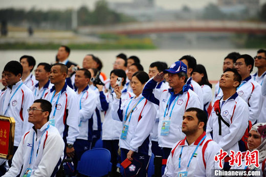 10日下午,廣州亞運城升旗廣場,中華臺北代表團(tuán)舉行升旗儀式。中新社記者 柯小軍 攝