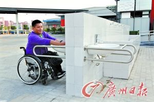 陳琦體驗運動員村里的無障礙洗手臺