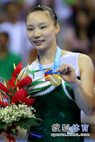 肖康君女子全能奪冠 頒獎露笑容展示金牌