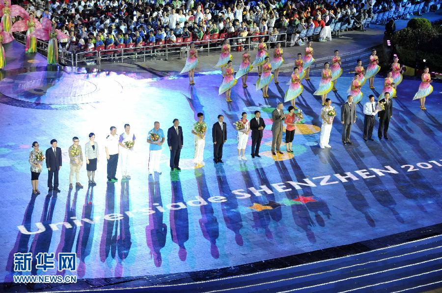 這是閉幕式上,志愿者代表、安保代表、媒體代表、司機代表等上臺接受獻花。新華社記者陳曄華攝
