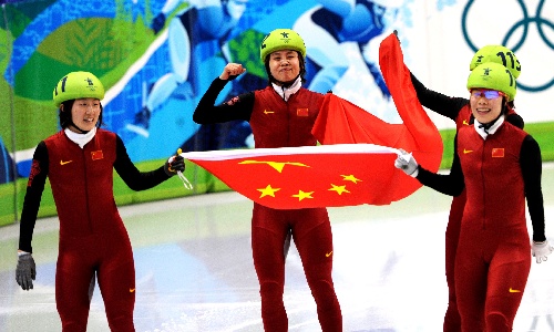 搜狐體育訊 2010年溫哥華冬奧會北京時間25日上午決出了短道速滑女子3000米接力的冠軍,王濛領銜的中國女隊先悲后喜,在韓國人以自己的犯規終結了她們五連冠的夢想,最終中國隊得到了這枚份量最重的金牌,同時4分06秒610的成績也打破了該項目的世界紀錄,加拿大和美國隊分獲二、三名,韓國隊因為犯規被取消成績。