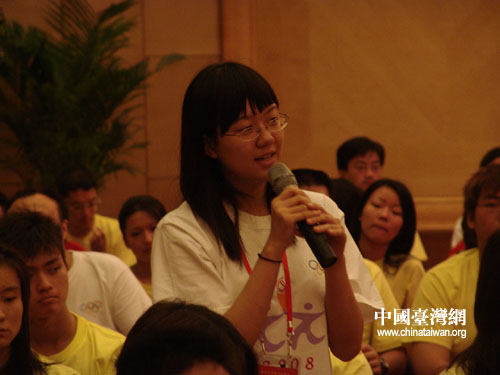 楊揚也忙得不亦樂乎。她的身旁圍了許多爭著照相、索要簽名的青年代表們。“沒想到奧運冠軍會那么漂亮!”,“她不像練體育的啊,更像是拍電影的,怎么看那么像趙雅芝!”,這樣的驚嘆不絕于耳。楊揚一一滿足了大家的要求,并在短短的時間內與臺灣青年代表們交上了朋友。