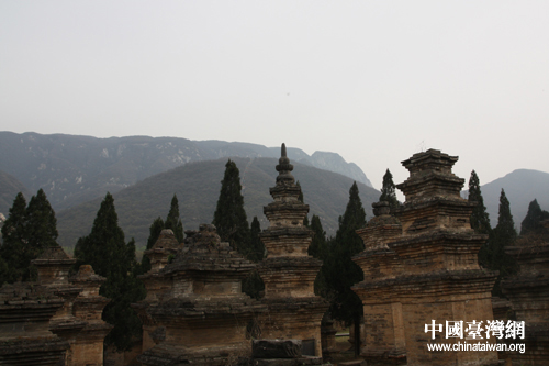 蒼茫的少室山與歷史悠久的塔林建筑(中國臺(tái)灣網(wǎng) 趙輝 攝)