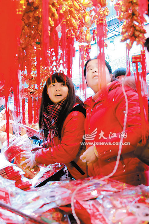 在南昌市萬壽宮商城,記者看到,各家春聯、飾品店生意都非常紅火。特別是中國結和各式各樣的兔子造型飾品,深受市民喜愛。一對夫妻拎著兩大袋裝飾品,還在喜滋滋地逛著。這對夫妻,剛買了新房,兔年將在新房子里過第一個新春佳節。“看著新家,打心眼里舒服,得好好布置布置,一家人高興高興。”