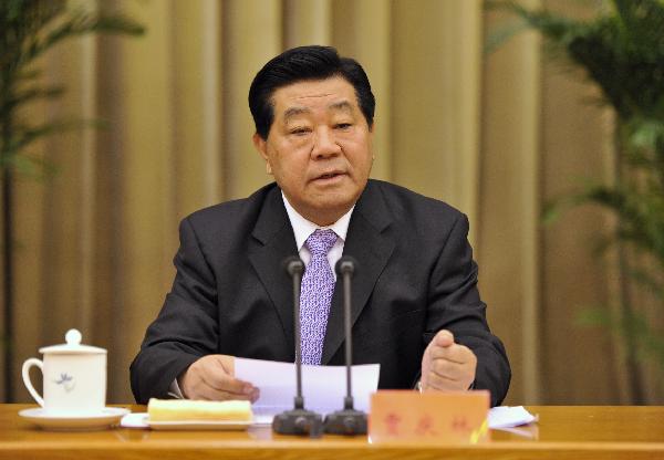 1月29日至30日,2011年對臺工作會議在北京舉行。中共中央政治局常委、全國政協主席賈慶林出席會議并作重要講話。新華社記者 黃敬文 攝