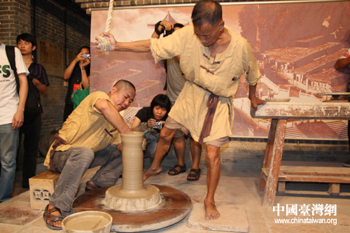 南風古社內的傳統陶藝表演(中國臺灣網 趙輝 攝)