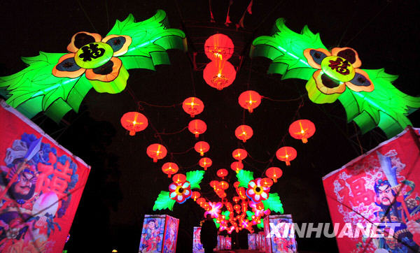 春節至元宵節期間,武漢東湖楚風園舉辦民俗花燈會,二十多組、一千多盞各式民俗花燈,為節日增添了喜慶氣氛。新華社記者 程敏攝