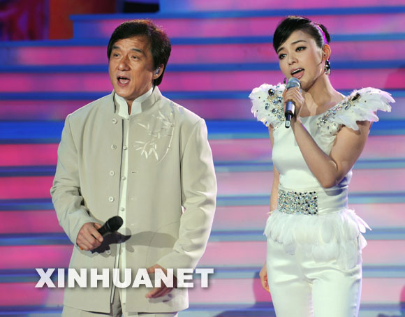10月31日,陳思思(右)與成龍在演唱會上表演。新華社發(fā)(吳景騰 攝)