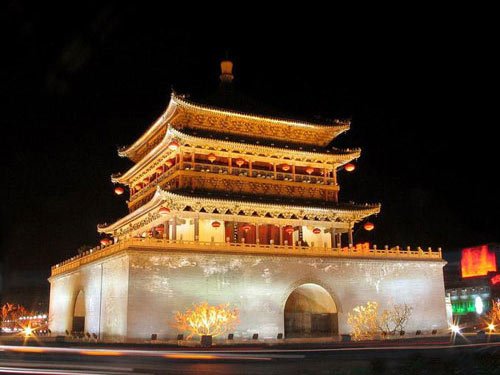 鐘鼓樓是西安的標志性建筑,位于市中心,鐘樓和鼓樓東西對峙。來到西安一定要體驗下“晨鐘暮鼓”,從環狀地下通道上到鐘樓,親手敲敲西北角上的那口明代鐵鐘,在悠揚的鐘聲里放眼四望,正對的西大街古建筑云集,紅瓦飛檐宛若仙界。在鐘樓看看東西南北四條大街,也許你會更懂西安。白天在鐘樓看風景,夜晚就要在黑暗中看鐘樓了。夜間的鐘樓在各色燈光的映照下,莊嚴,華美,神秘。欣賞鐘樓夜景后最適宜到鼓樓后面的回民街逛逛,這里是西安最有名的小吃街,賈三灌湯包,紅紅酸菜炒米,特色小甄糕,平娃烤肉……欲罷不能的小食。