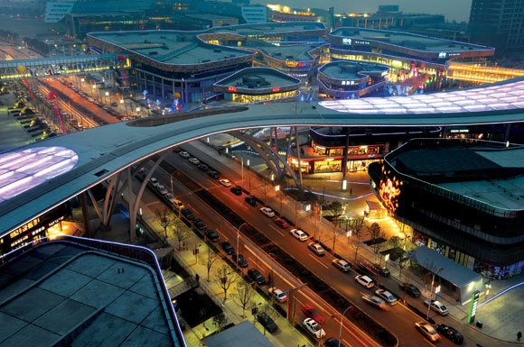 如果說(shuō),“產(chǎn)業(yè)升級(jí)”為園區(qū)“擇優(yōu)”集聚了更多的先進(jìn)制造企業(yè),“科技跨越”推動(dòng)培養(yǎng)了園區(qū)的自主創(chuàng)新、科技研發(fā)能力,那么,“服務(wù)業(yè)倍增”就是讓園區(qū)更像一座城市了。盡管在早期的開發(fā)建設(shè)過(guò)程中,園區(qū)的服務(wù)業(yè)還是以傳統(tǒng)的餐飲、酒店等類型為主,但即便是這些傳統(tǒng)的服務(wù)業(yè)形態(tài),在園區(qū)進(jìn)行規(guī)模化經(jīng)營(yíng)的基調(diào)也是從一開始就確立的。從左岸商業(yè)街到中天湖畔,從湖濱新天地到李公堤,從葑誼路商業(yè)街、斜塘商業(yè)街到淺水灣商業(yè)街,園區(qū)的傳統(tǒng)服務(wù)業(yè)做到了“規(guī)劃區(qū)域,明確定位,相互補(bǔ)充”。2009年1月16日,圓融時(shí)代廣場(chǎng)在金雞湖東華彩亮相。這座華東地區(qū)首屈一指的商業(yè)航母,連同周圍的金雞湖商業(yè)廣場(chǎng)、現(xiàn)代休閑廣場(chǎng),以及即將竣工的摩天輪公園、月光碼頭,正在大規(guī)模地集聚起人氣和商氣,同時(shí)也為蘇州的城市名片添加了全新地標(biāo)。