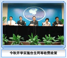 為鼓勵和支持臺灣學生到祖國大陸高等學校和科研院校學習、深造,維護其切身利益,經大陸有關部門積極會商,決定自2005年秋季入學起實行臺生同等收費政策: